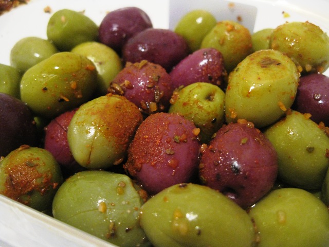 I have to give a very favorable nod to the regional specialty, olives mixed with herbes de provence, but let's not overlook a very spicey pimento, parsley, & curry version, and I also found a surprising mix that quickly became a hands-down favorite: garlic, cumin, sweet pepper, & laurel (pictured above). Now that's one flavorful olive.